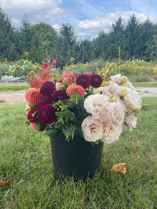 We have a variety of options available for whatever event or occasion you have. Our arrangements are traditional sizing and market value pricing, but we often get carried away in the bounty of blooms and overfill the arrangements. So not only are you getting the freshest flowers, you are getting the best value as well!